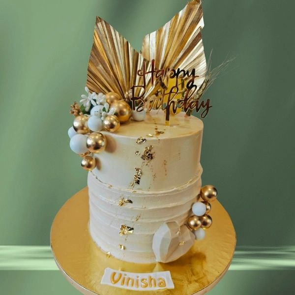 Celebrate life’s sweetest occasions with the Golden Theme Cake, an elegant masterpiece from CremeBliss. Designed to dazzle and crafted to perfection, this cake is more than just dessert—it’s a statement of luxury and sophistication. Whether you're hosting a milestone birthday, an anniversary, or a glamorous event, this cake promises to be the centerpiece that everyone remembers.